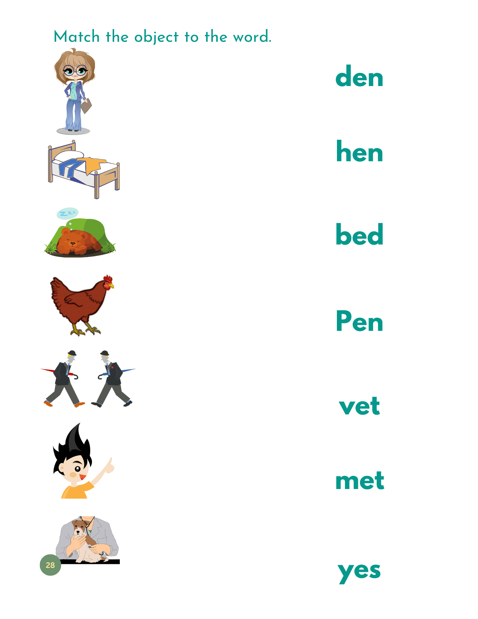Match words with clear, kid-friendly illustrations