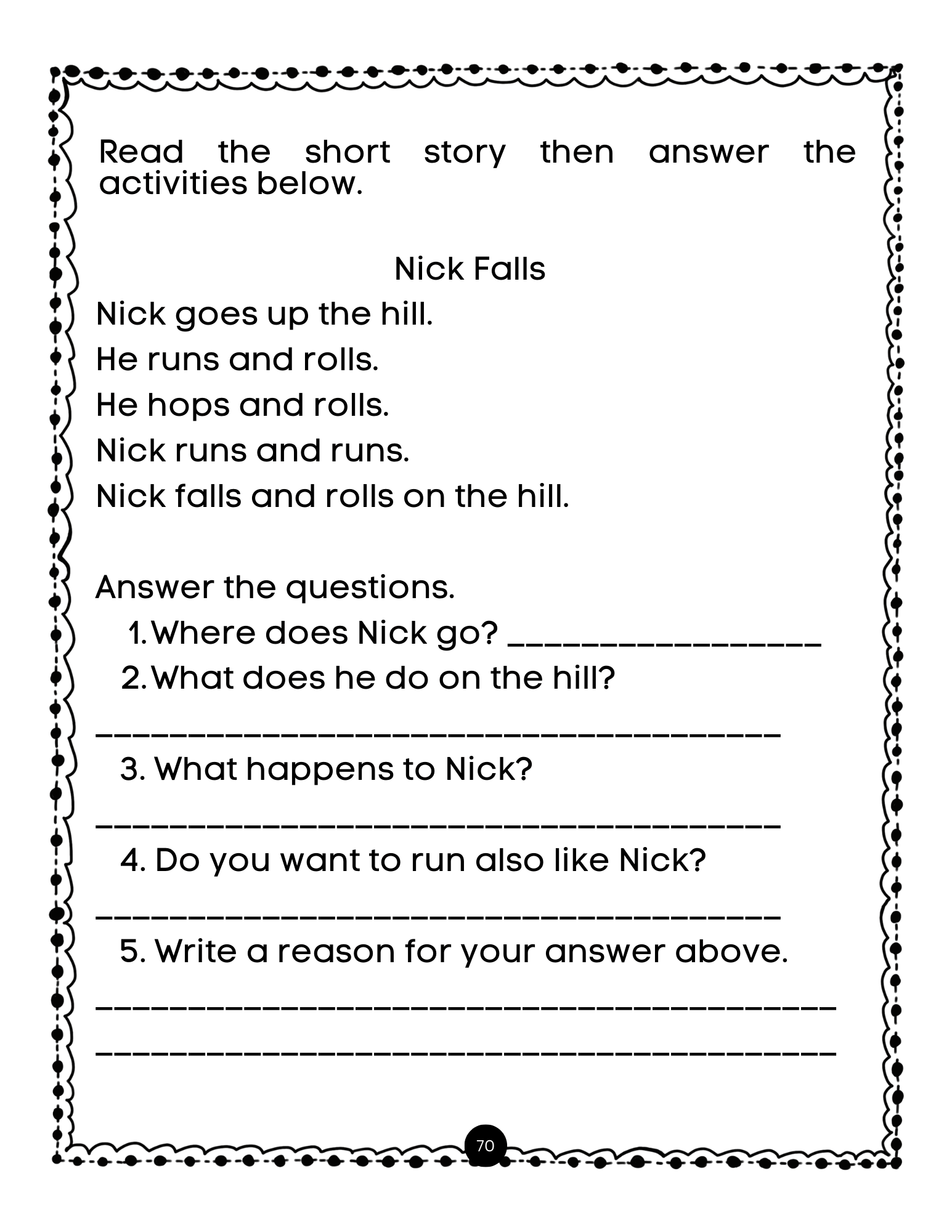 • Reading comprehension activities after each story